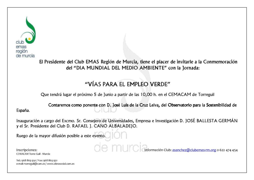 Invitación a la Jornada de celebración con motivo del Día Mundial del Medio ambiente