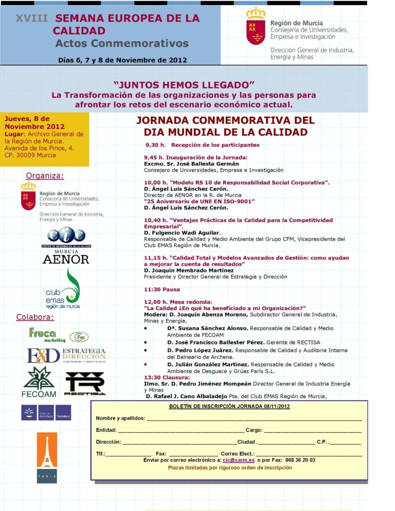 Interesante jornada celebrada el 9 de Noviembre, con motivo del Día Mundial de la Calidad. Promocinada por el Club Emas de la Región de Murcia, se celebraron distintas charlas y conferencias enfocadas a la Calidad como herramienta de progreso. Julián González, Coordinador de Calidad de Desguace Paris, hizo referencia a la importancia de la «Comunicación […]