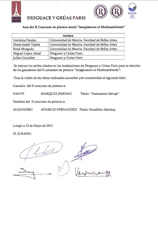 Acta del fallo del jurado de II concurso de pintura «imaginemos el Medio Ambiente»